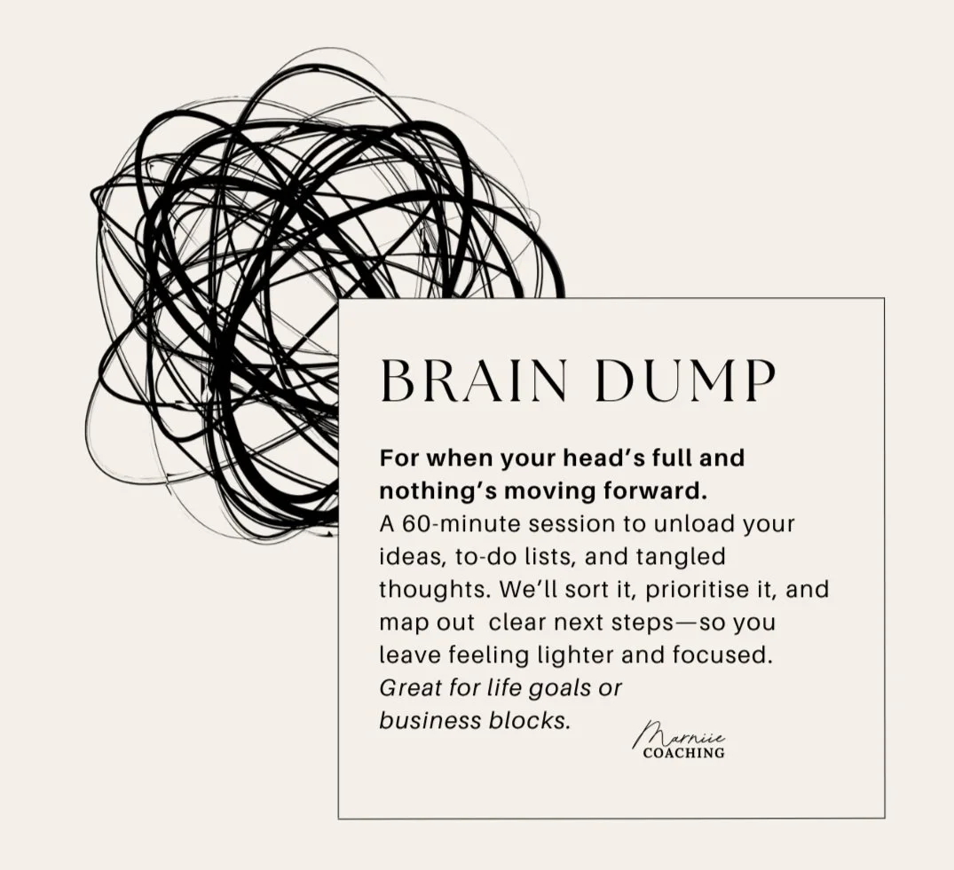A 60-minute session to unload your ideas, to-do lists, and tangled thoughts. We’ll sort it, prioritise it, and map out clear next steps—so you leave feeling lighter and focused.